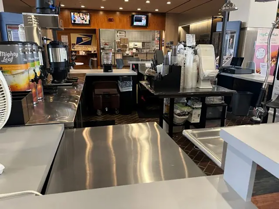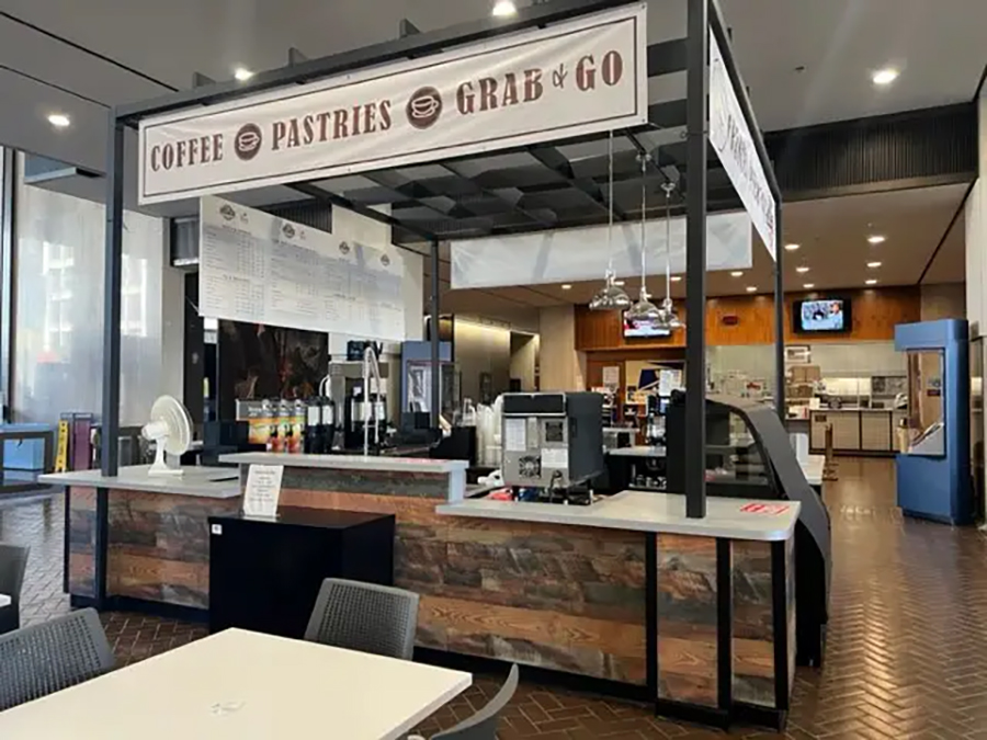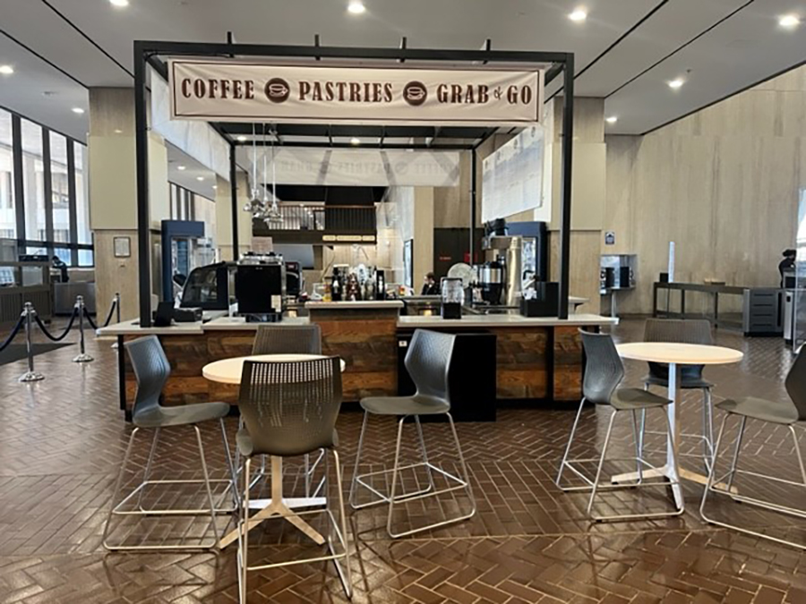 AMAR Group’s design for the Frances Perk Cafe prioritizes safety and accessibility, incorporating fire-proof materials and ADA-compliant countertops. The touch-free coffee kiosk has modern commercial coffee equipment and efficient lighting, ensuring a seamless experience for customers and baristas. The aesthetic design is both functional and inviting, enhancing the lobby space.