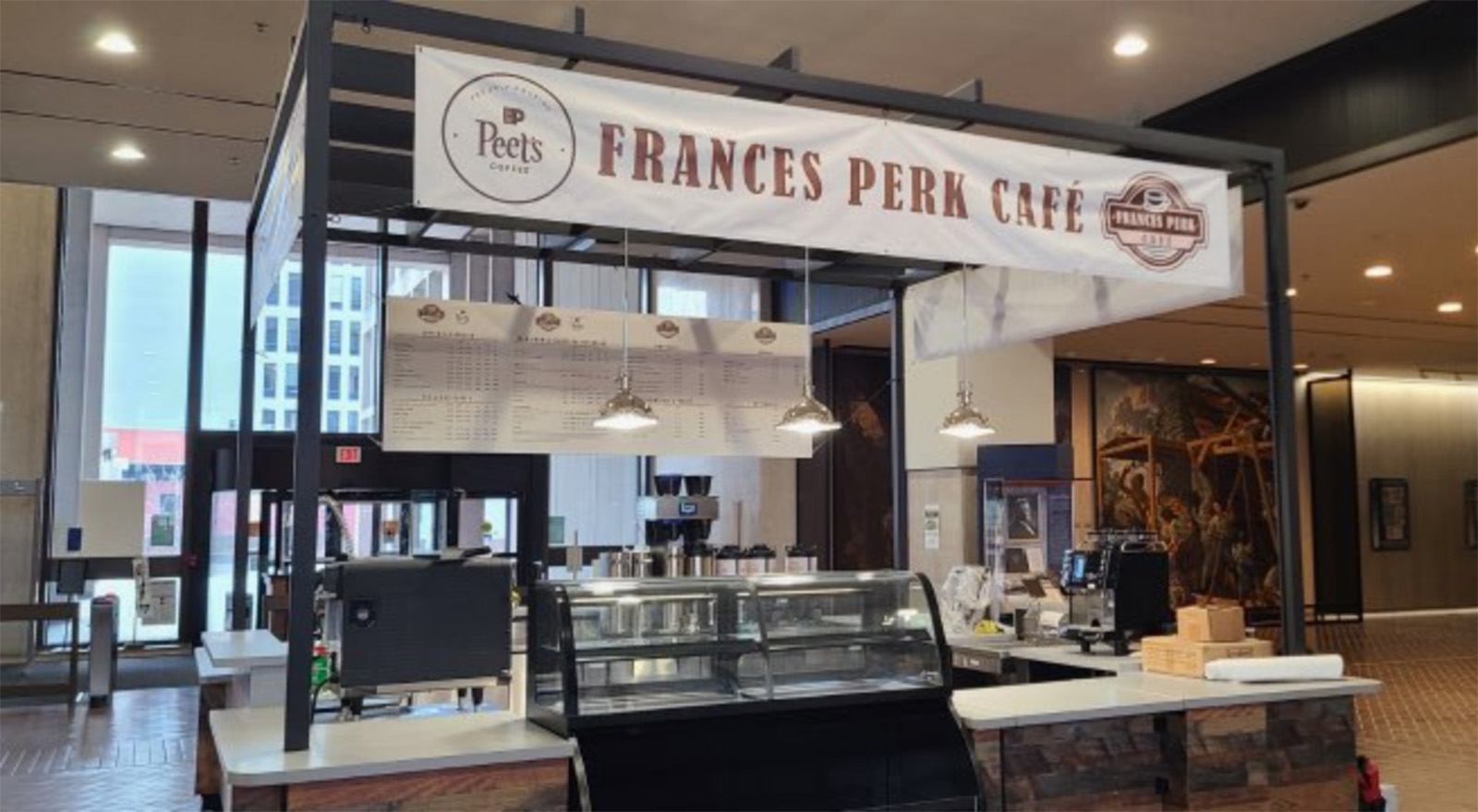 The Frances Perk Cafe, located in the Department of Labor Perkins lobby at 250 E Street, SW, Washington, D.C., is a touch-free coffee kiosk designed by AMAR Group. The project, completed in 2023, involved designing and installing a Peet’s Coffee kiosk featuring fire-proof construction materials, commercial coffee equipment, refrigerators, lighting, and ADA-compliant countertops. AMAR Group was involved in creating the schematic designs, finish boards, and construction documents, gaining approvals, and administering the kiosk’s construction.